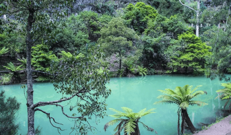 Although you can’t swim in this lake as it’s home to a platypus or two, you can swim in the waterhole downstream below the waterfall, so make a morning of it and do the Jenolan River Walking Track to hit both stunning locations.